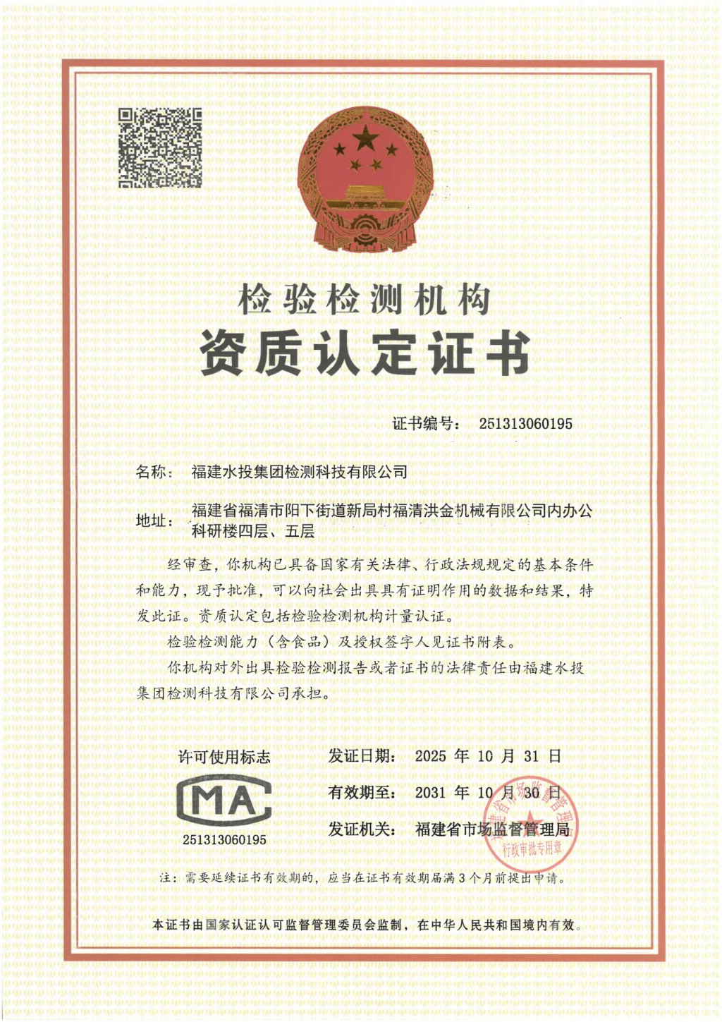 檢測科技公司獲批水質(zhì)檢測CMA資質(zhì)認(rèn)定